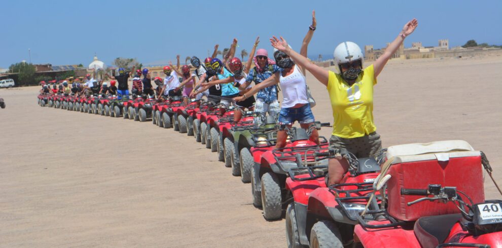 - The Family safari is suitable for families with children who want to enjoy the desert scenery. Roar though the sand dunes on a all-terrain vehicle (ATV). Open your throttle and zoom across the sand. Where you can challenge your driving skills over the bumpy sand dunes. You will also get to enjoy a 15 minute Buggy Ride. Once you have arrived at the Bedouin Village, you will then get to unwind while drinking Egyptian Tea, where you will discover the local lifestyles. After this you will get a buffet-style dinner and watch a amazing Oriental Show.
